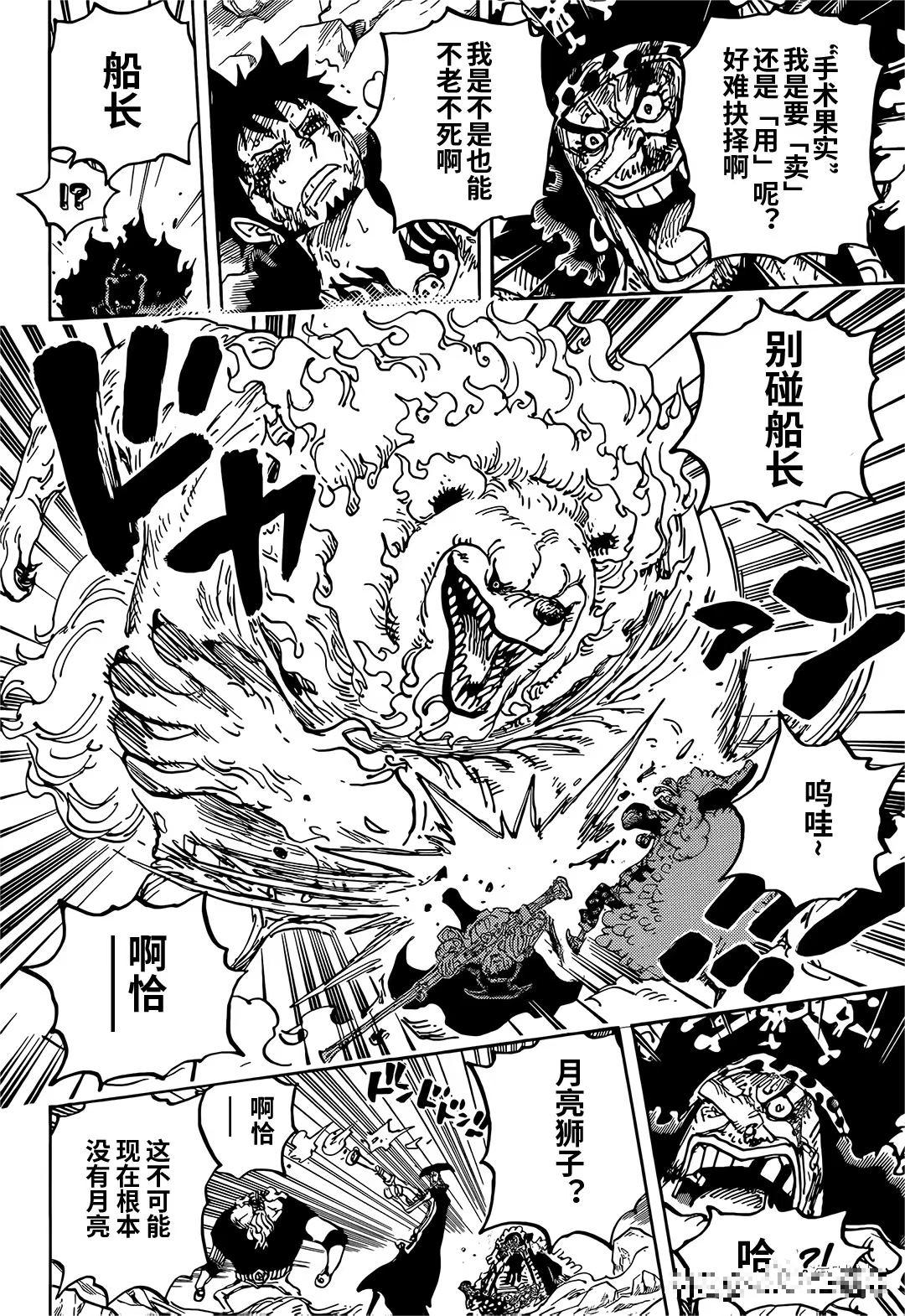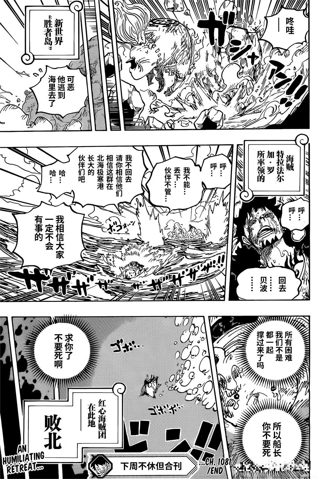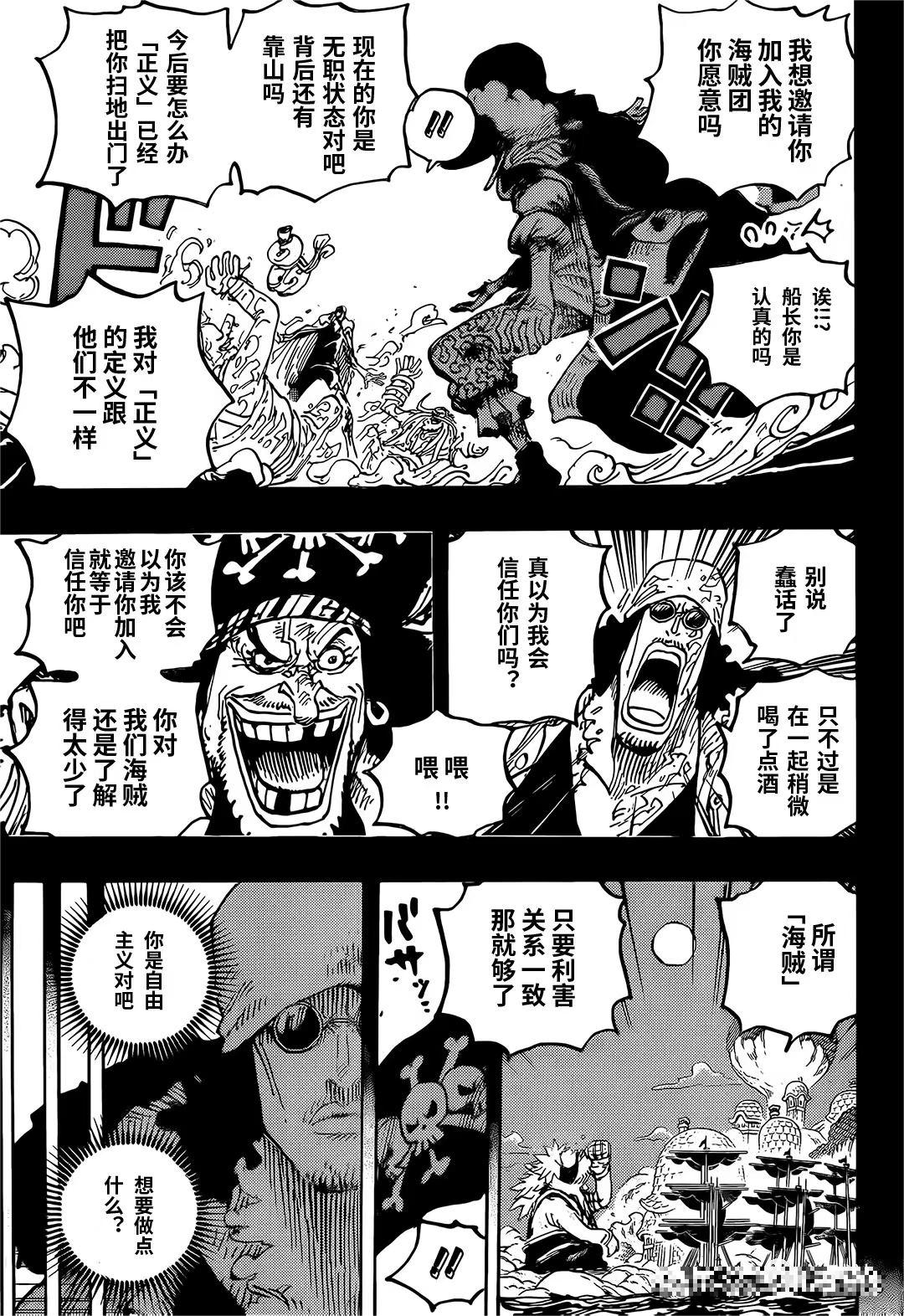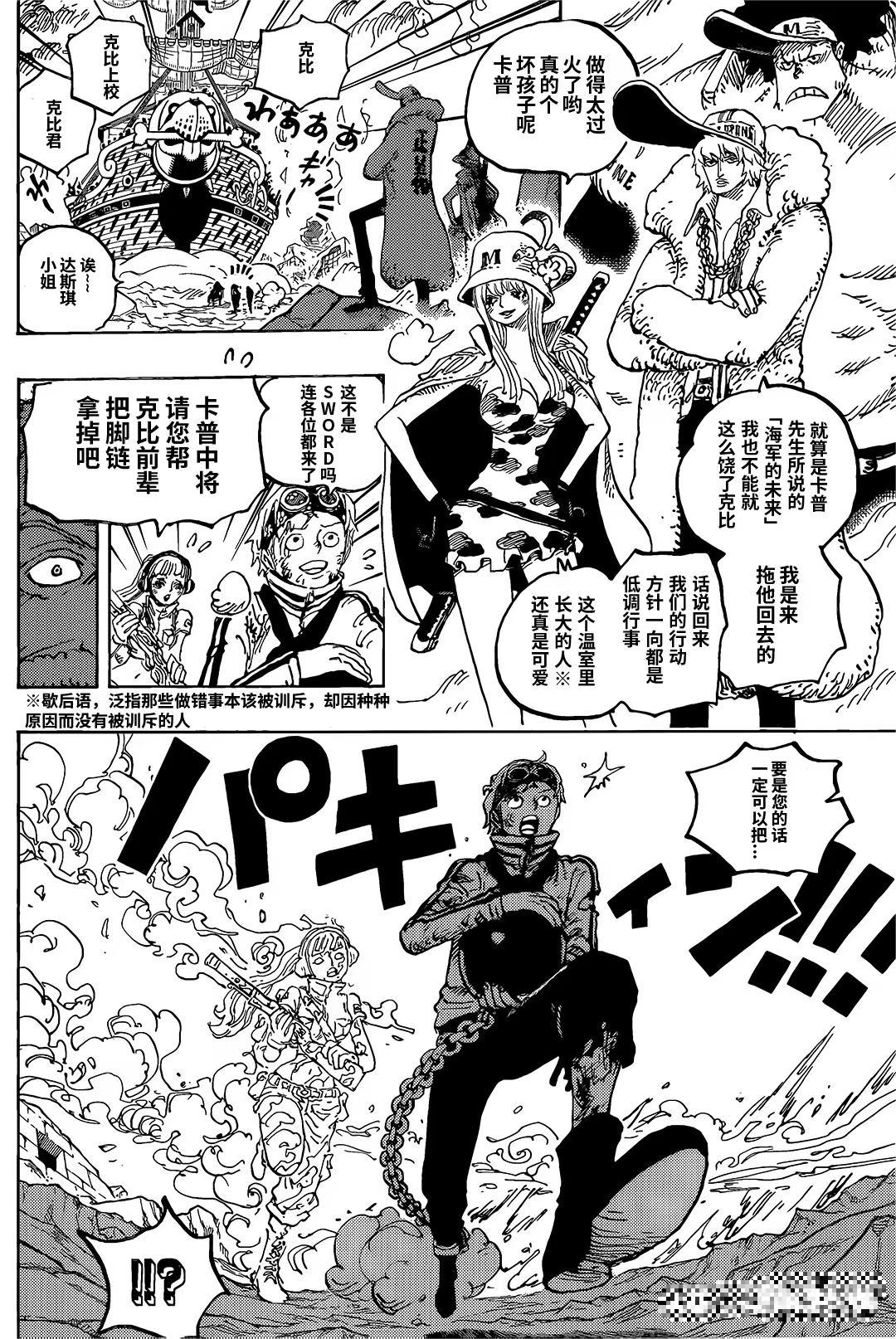 本话是库赞(前青雉)转变的关键篇章,围绕库赞与卡普的对峙展开。在胜者岛的战场上,库赞率领黑胡子海贼团彻底击垮了红心海贼团,克比等人被迫投降。库赞利用“震震果实”制造了毁灭性的冲击波,导致卡普的旗舰被摧毁,迫使卡普使用“死亡笛”进行紧急撤离,随后在极地潜水号的残骸中与库赞展开了激烈的肉搏战