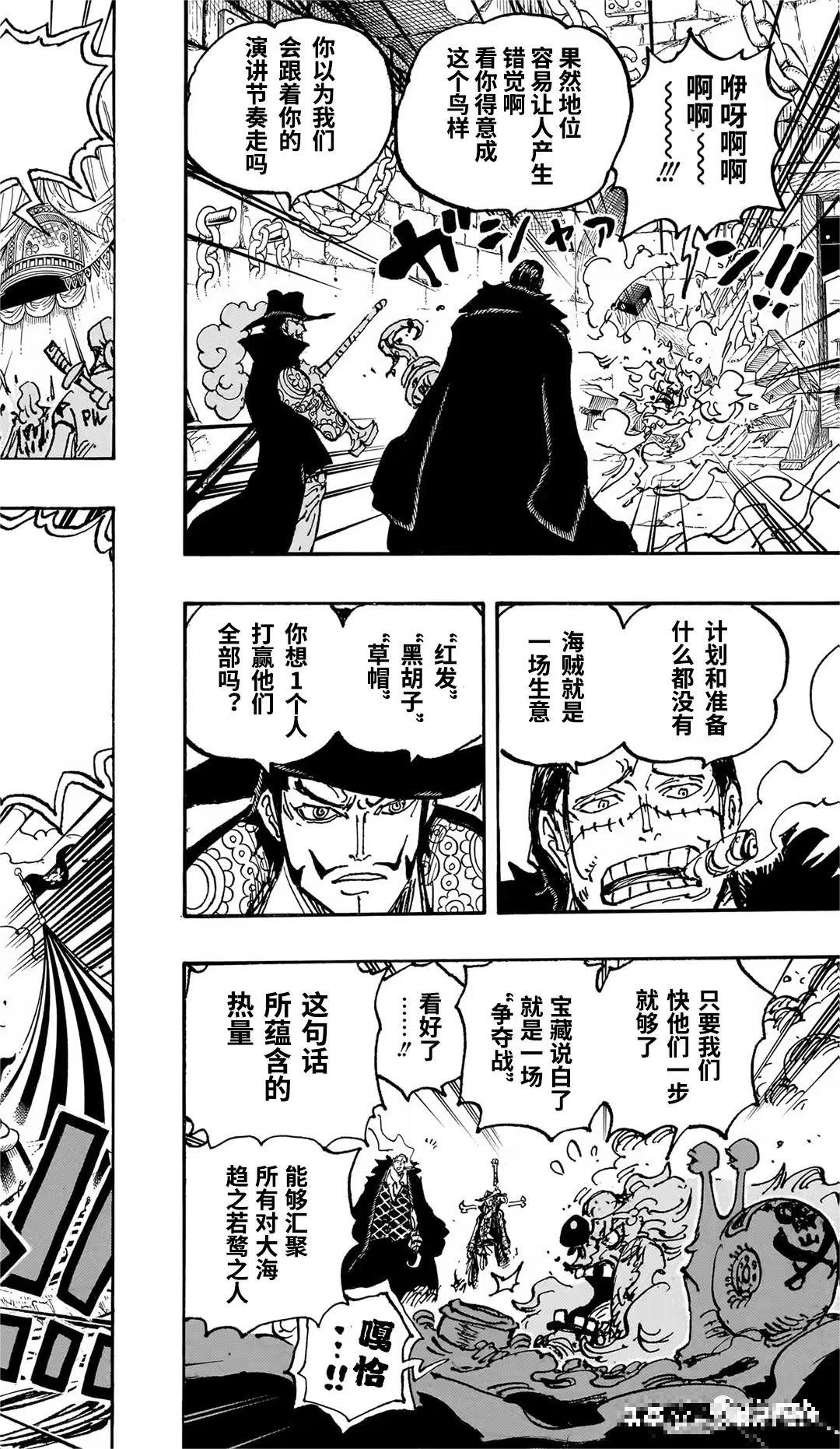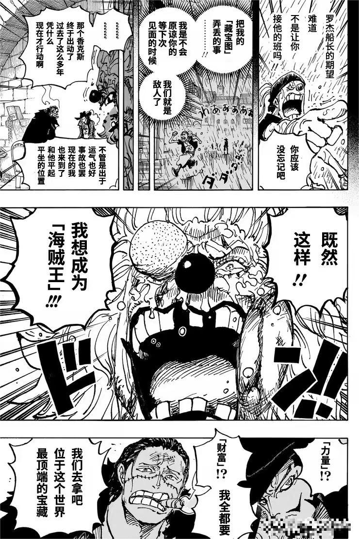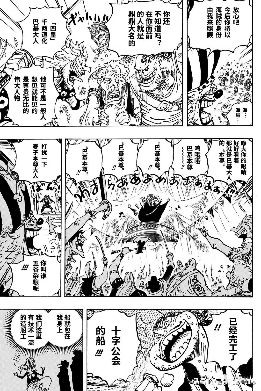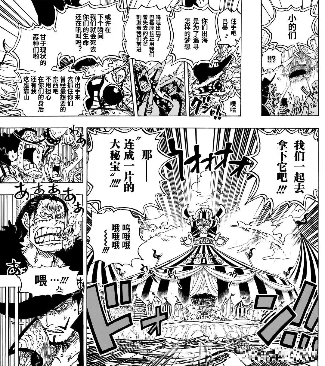 巴基正式宣布自己是“四皇”巴基。面对多弗朗明哥提出的“军事国家”理想,巴基认同并称赞其为“大海趋之若鹜之人”。他高呼“我们去拿下它”,点燃了夺取“大秘宝”的激情,势力正向新世界扩张