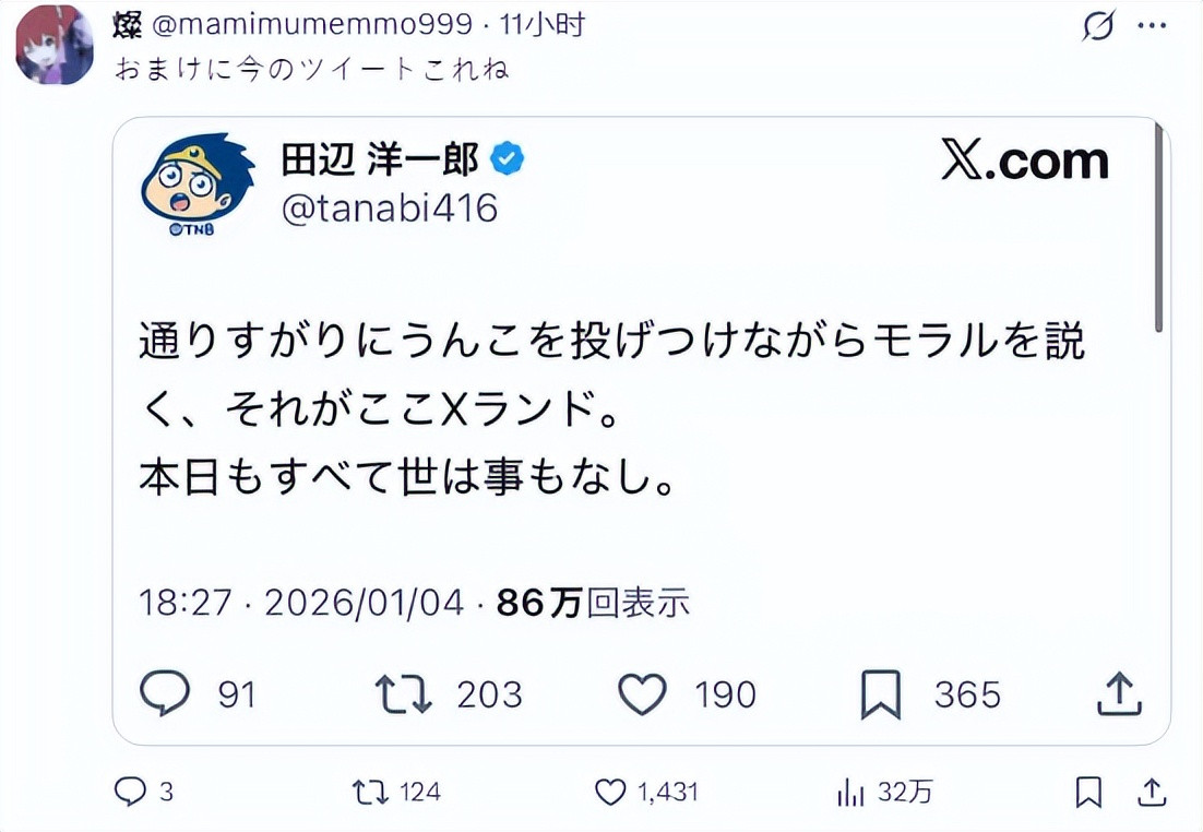 然而就在 1 月 3 日晚间,田边洋一郎却在 X 上发布了一条令人震惊的内容。
