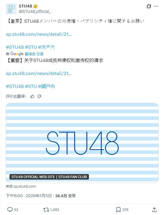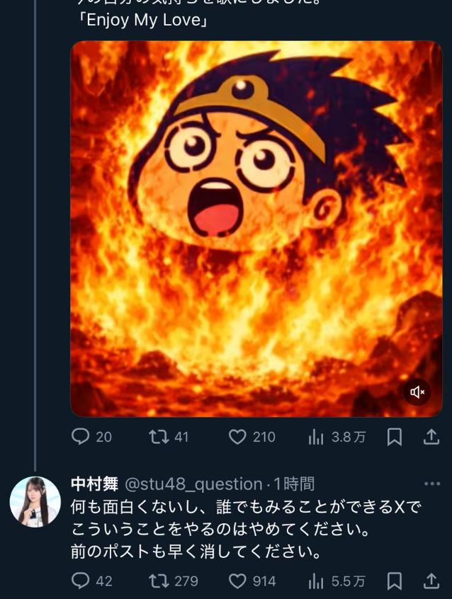 同时,STU48 官方 X 账号也表示,将针对类似 AI 骚扰行为采取相应应对措施。