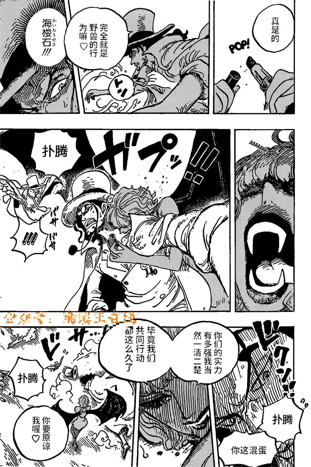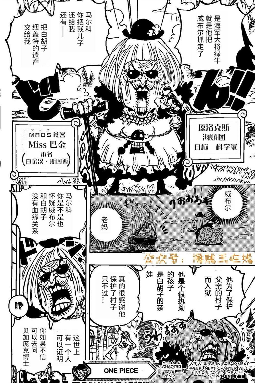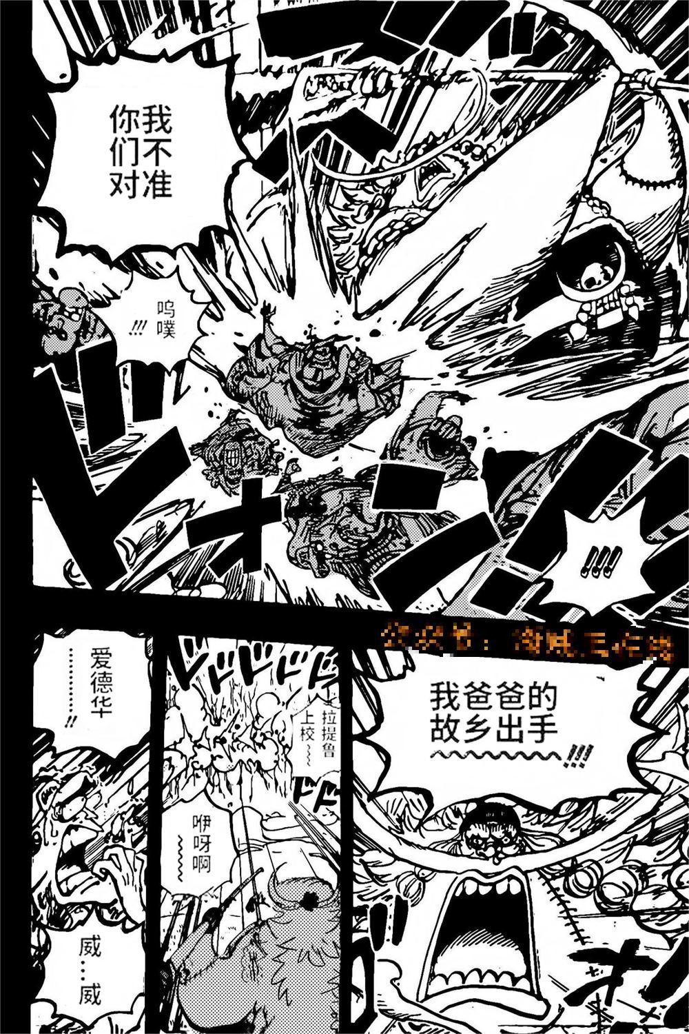 草帽团在斯芬克斯岛的村子,白胡子残党被抓走。马尔科与巴金商议救回白胡子。黄猿为老人提供食物。结尾登场的五老星“杰卡鲁西亚·萨坦”出现,称事态发展遗憾,暗示着未来岛篇的结束