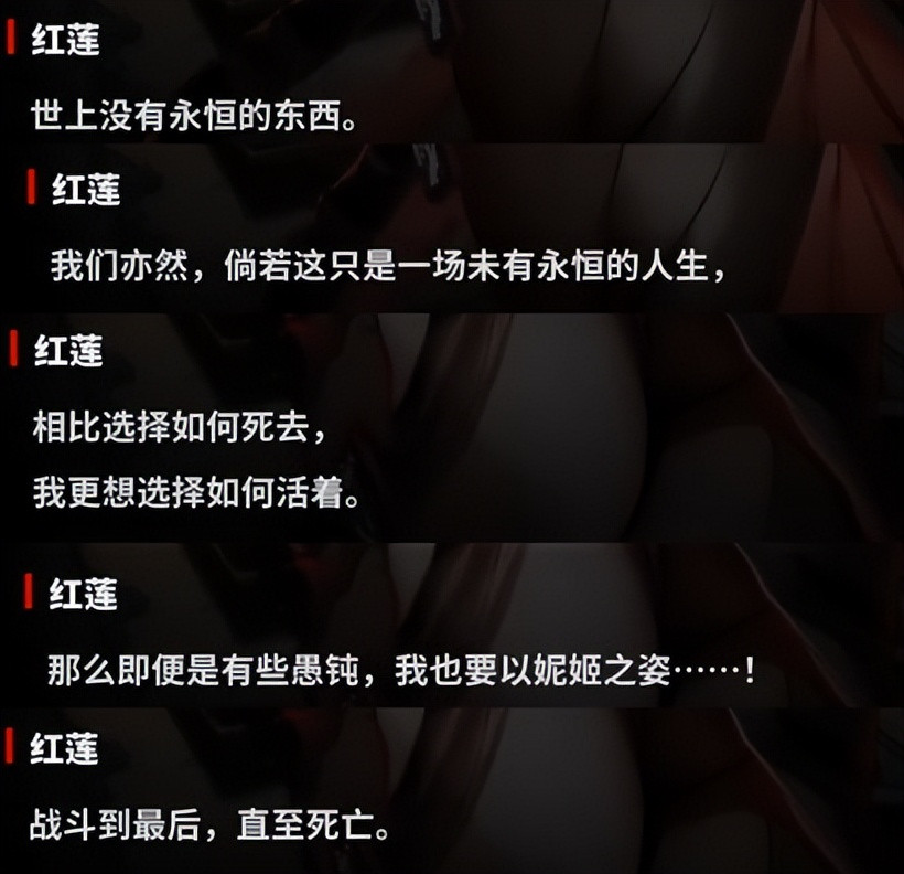 花无十日红,出自杨万里的诗词,“只道花无十日红,此花无日不春风”。他说花的色彩不会超过十天,但月季花每天都是春风满面,娇艳欲滴,若是两句均取,或许红莲姐妹的故事不会以悲伤收尾,可惜这是吃人的方舟。从桃乐丝活动中玩家们一步步看着女神部队遭到背叛,在人类龟缩后取女神部队当做胜利象征,对真正的女神部队不管不顾,何其讽刺,连出力最大的女神部队都被如此对待,更别说量产型普通妮姬的遭遇在大环境下何其恶劣,取其一点放大来看,那千万妮姬炮灰填线的过去中亦有红莲和蔷花的名字——没有娇艳的花儿,只剩短命的妮姬,名为“花无十日红”的一柄利剑,连同姐姐的话语刺在红莲的心头。