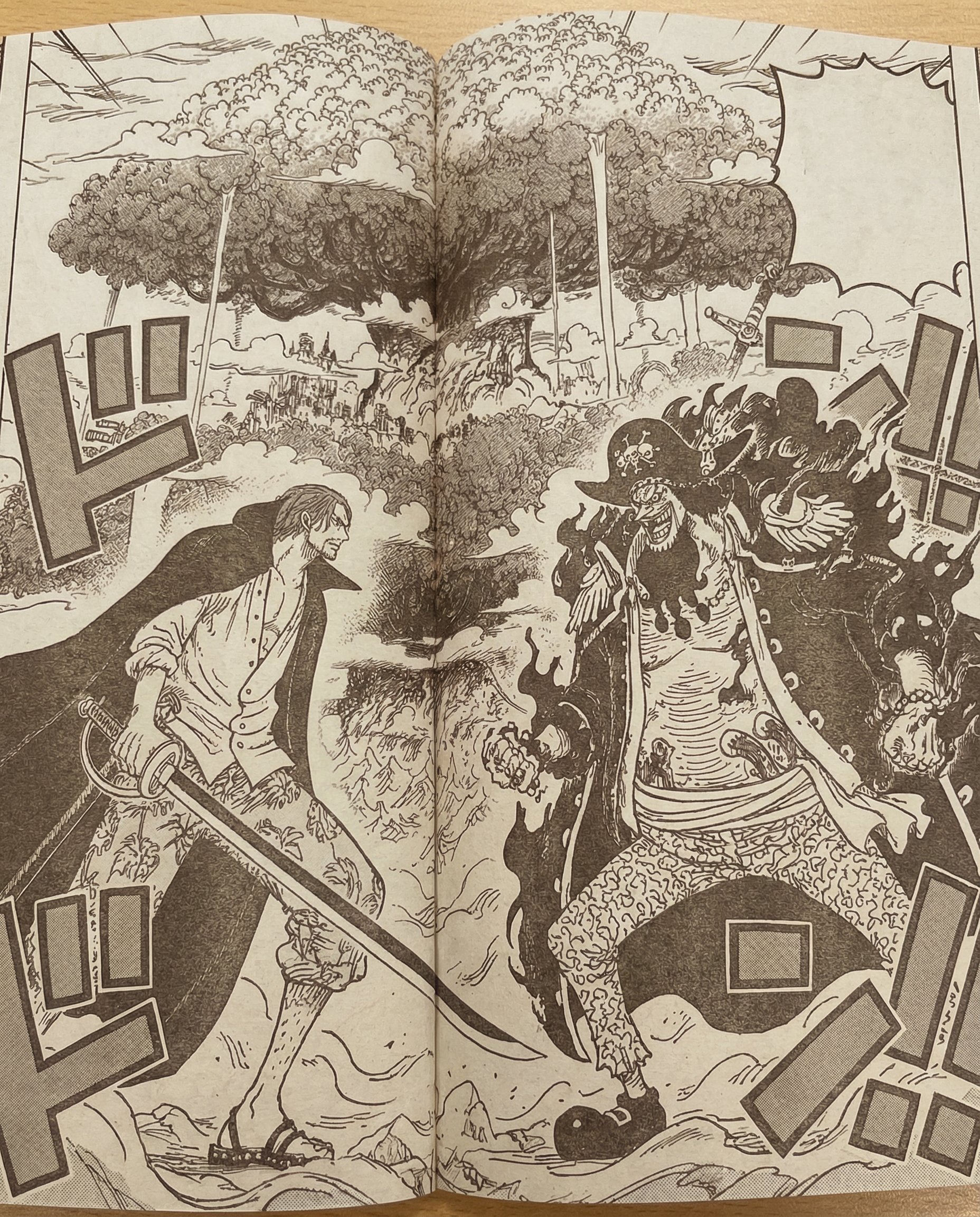 两人在冥界一处地方展开激烈的决斗!香克斯的霸气和剑术全开,是非常克制黑胡子的恶魔果实的,而黑胡子的震震果实和暗暗果实并不能对香克斯造成克制效果,显得很被动。