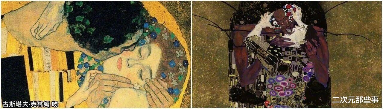 最后就是乙骨忧太的这个场景,它应该是致敬了奥地利知名象征主义画家古斯塔夫·克林姆的作品《吻》。当然,这些只是我暂时发现的几处“致敬”地方,相信OP里还有其他的致敬只是我没看出来,大家有发现也可以在下方评论区晒出来。