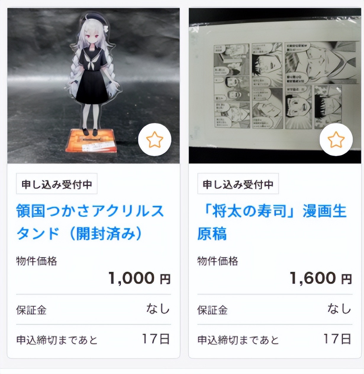 当然除了高达、卡牌之外,连《将太的寿司》的漫画原稿,也被列入过官方拍卖。