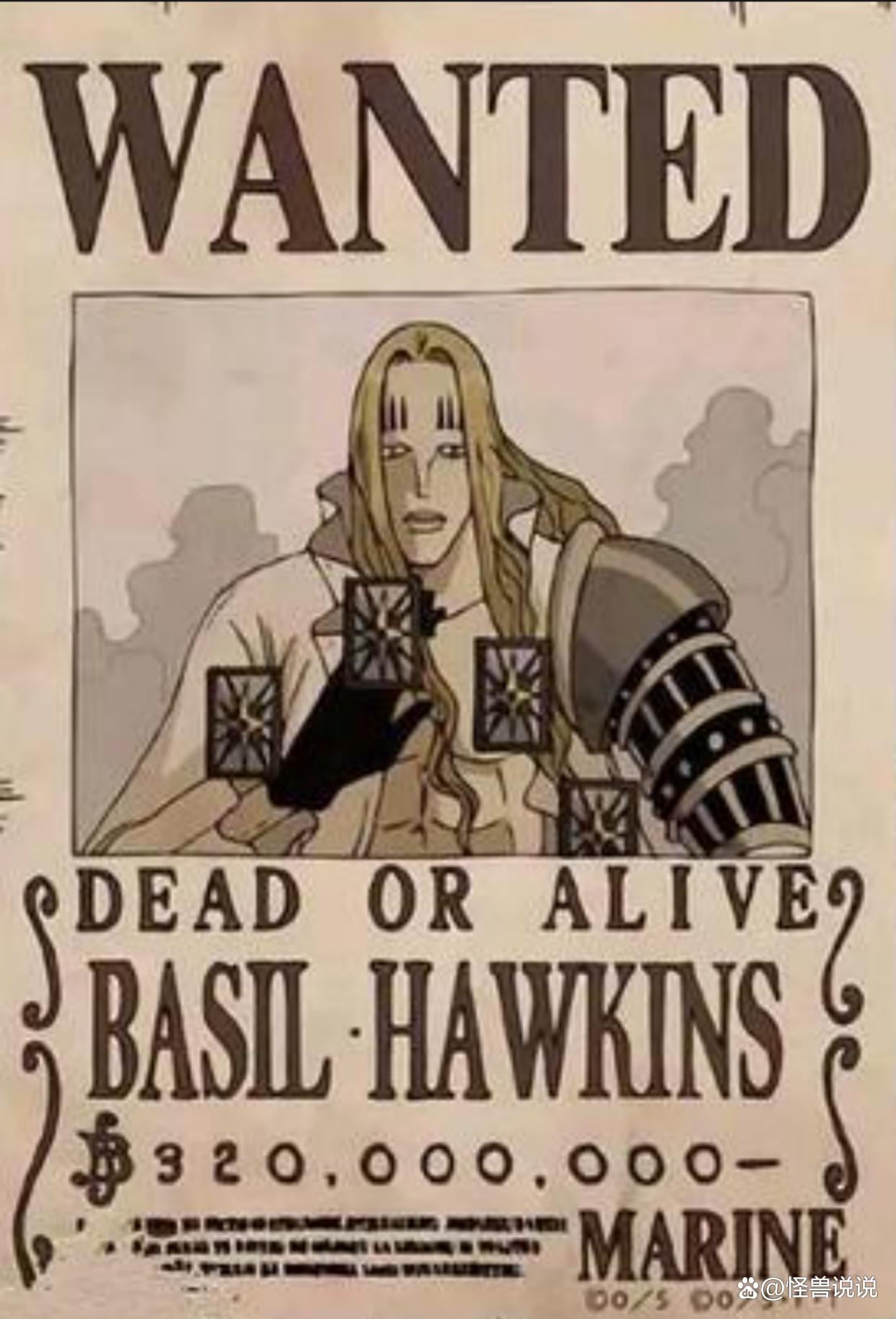 霍金斯曾作为凯多的部下参与鬼岛之战,其稻草果实的占卜与替身能力一度压制索隆。尽管最终败于基拉,但他在和之国的表现使其赏金从 2 亿 4900 万贝里升至 3 亿 2000 万。霍金斯以占卜能力预知未来动向,暗中与黑胡子海贼团交易情报。