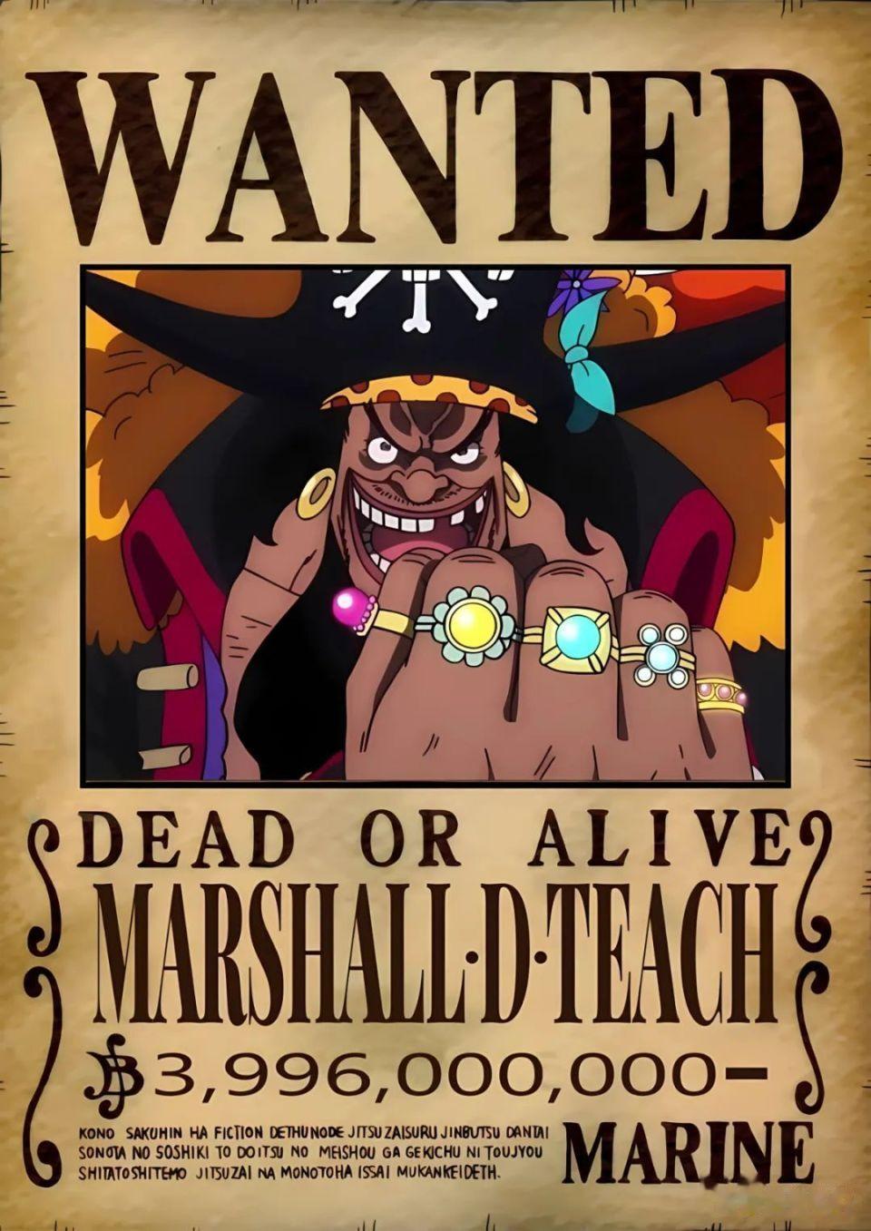 1. 马歇尔・D・蒂奇(黑胡子) 悬赏金:39 亿 9600 万贝里