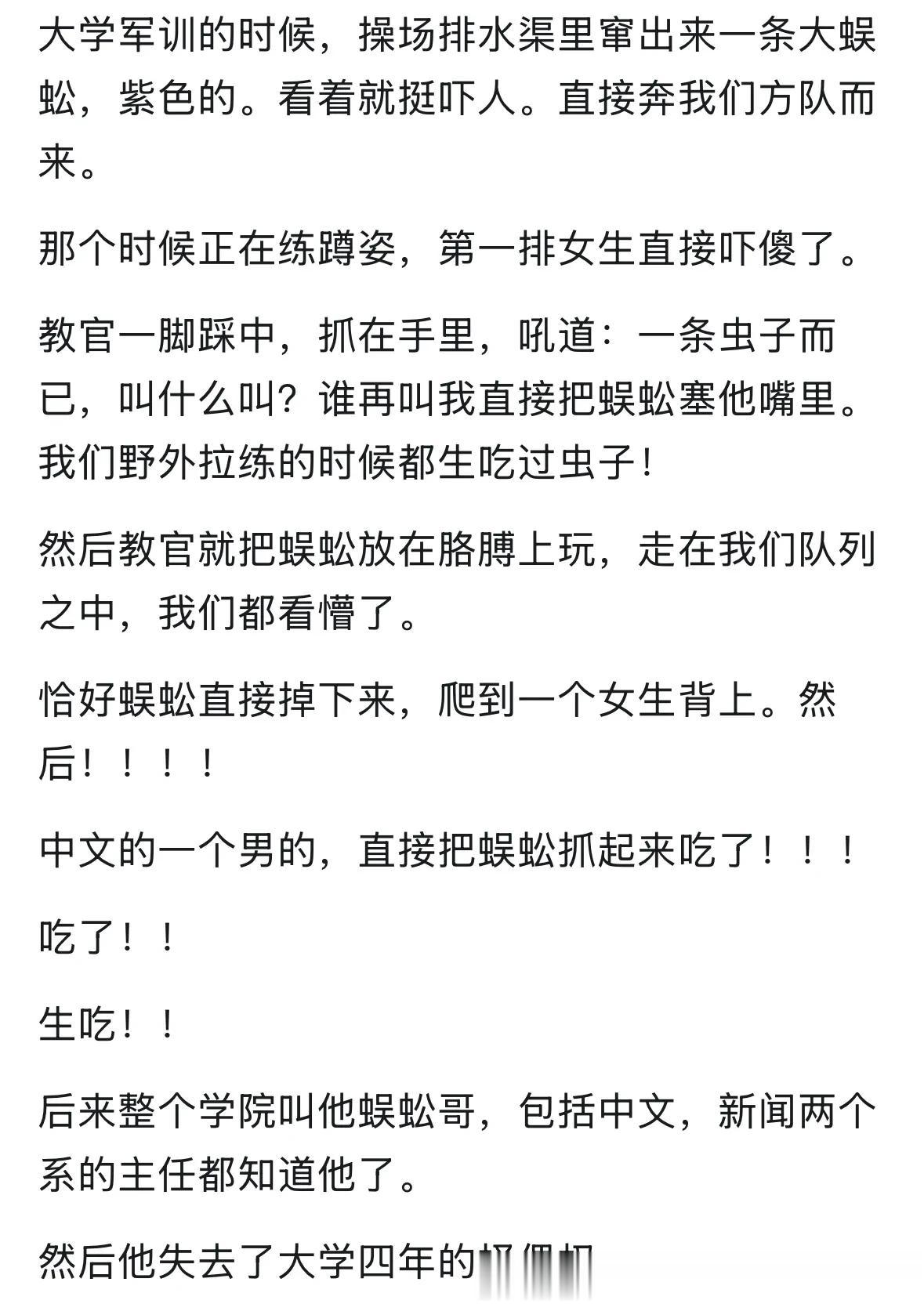 看到生吃蜈蚣确实比看到蜈蚣更惊悚,想到把张牙舞爪扭曲摇摆的丑陋虫体一截截放进嘴里嚼得汁液四溢的画面