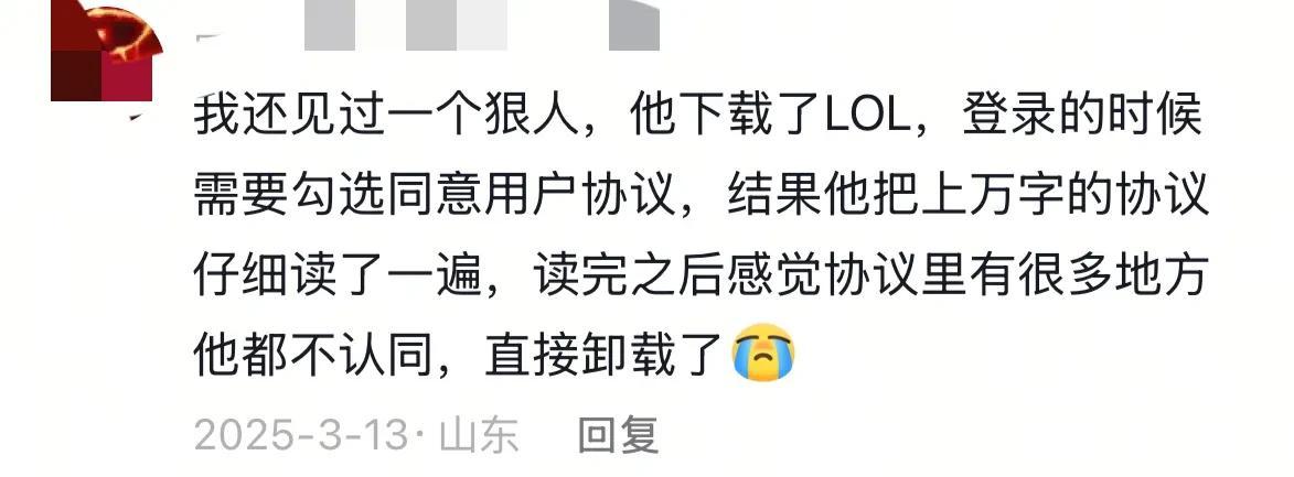 下载了LOL把上万字的协议仔细读了一遍,读完之后感觉协议里有很多地方他都不认同,直接卸载了