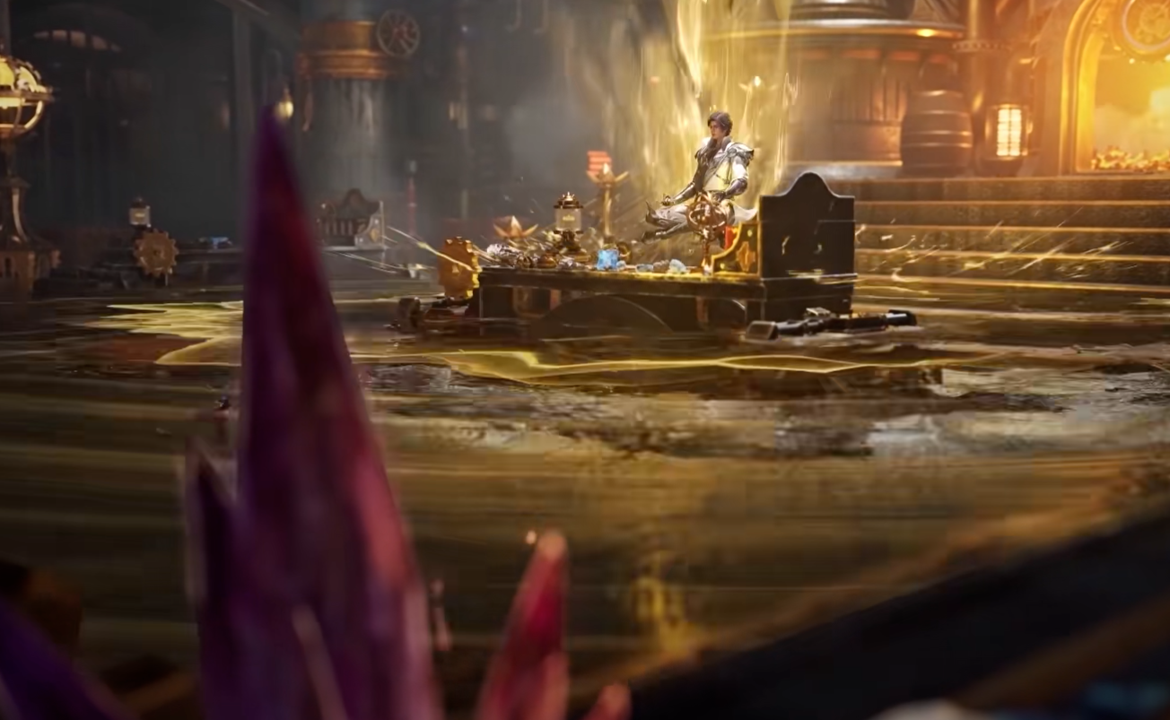 值得一提的是制作组的细节把控。雨浩造器时极致之冰的蓝光特效、分解炮成型时的寒光质感,都做得极具冲击力;橘子剧情线的氛围则完全不同,冷色调的宫殿、压抑的背景音乐,精准烘托出权谋斗争的紧张感。