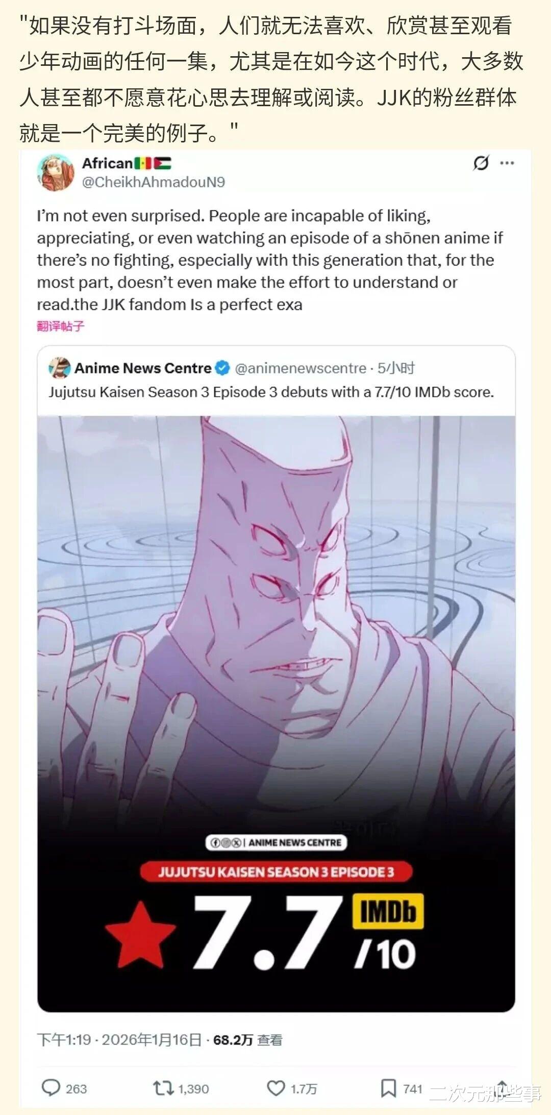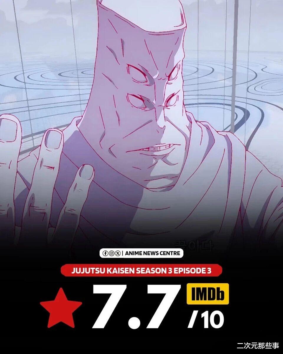 自从《咒术回战》第三季动画上线后,这一季的质量一直是广受好评,制作水平也完全达到了粉丝心目中的预期。只不过在第三集播出后,动画的口碑却出现了不小的下滑,在国外的评分网站中,《咒术回战》第三季第三集的分数只有7.7分,远低于第一集的9.2和第二集的8.8。