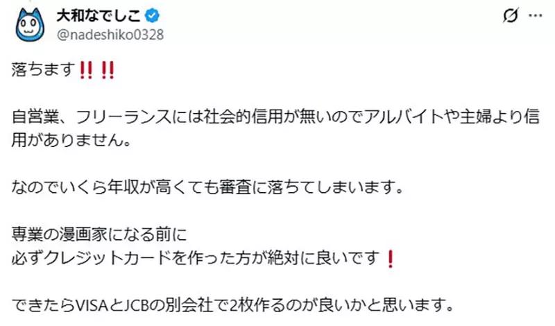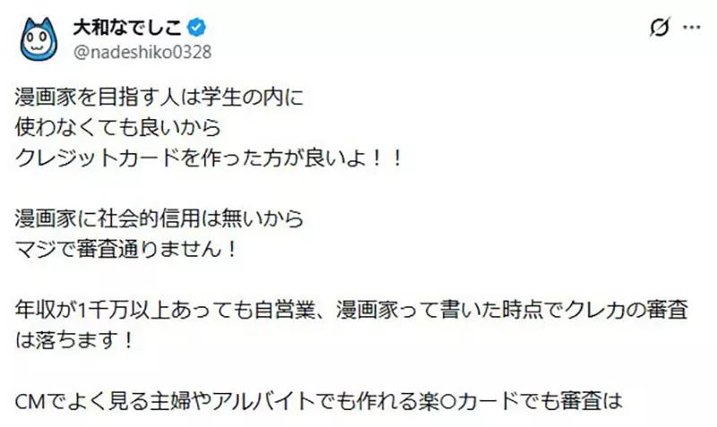 最近,一位日本漫画家在 X(原推特)发帖,公开向所有“想当漫画家的学生”发出灵魂忠告: 趁你还是学生,赶紧先办一张信用卡。