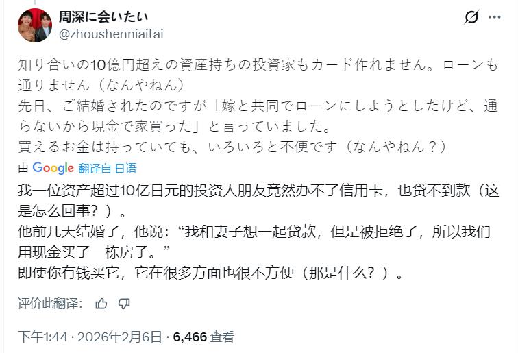 “我认识存款上亿日元的人,照样办不了信用卡。”