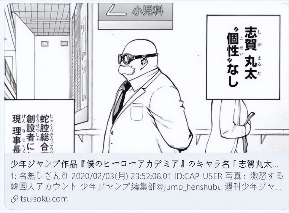 你可能要问,联动怎么了?问题在于,《我的英雄学院》的作者曾经把反派角色命名为“志贺丸太”。