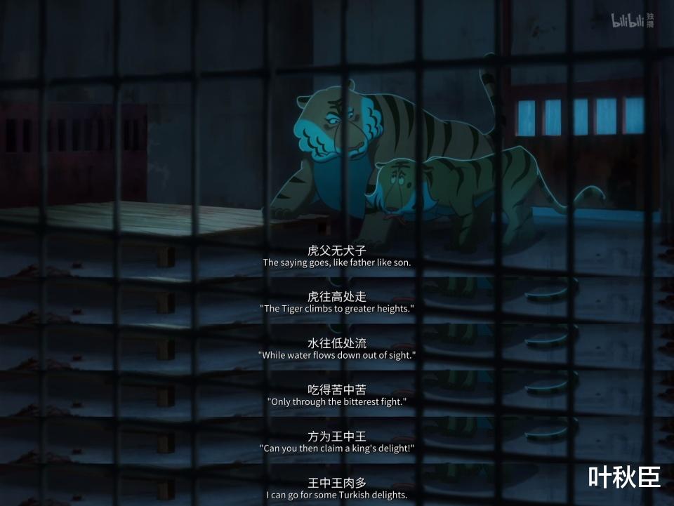 虎馆内舍里,东北虎和华南虎是夫妻俩,东北虎说表演馆有前途,门票更高,还说未来让自己的小虎崽也去。