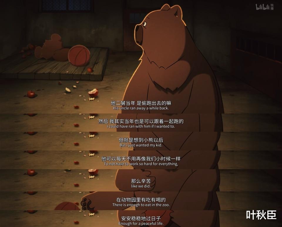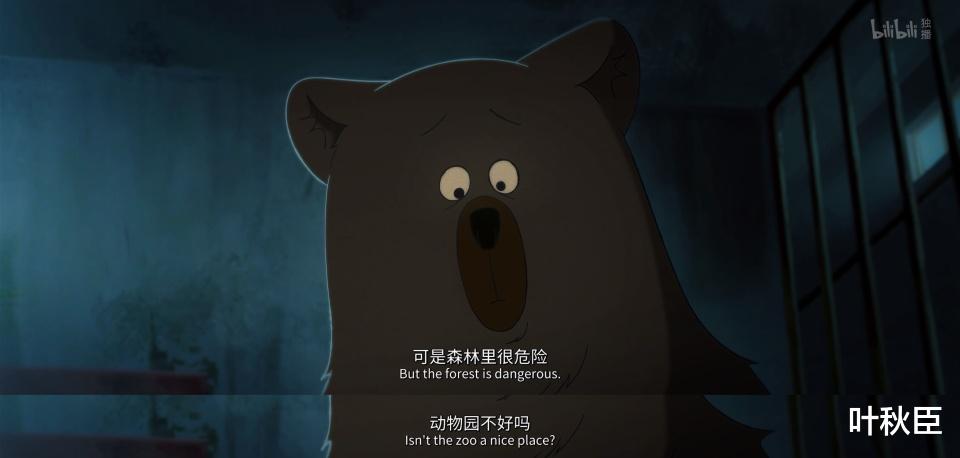 熊馆内舍里,熊妈妈说小熊就要去表演馆了,那是孩子自己的选择,她并不认同但支持。