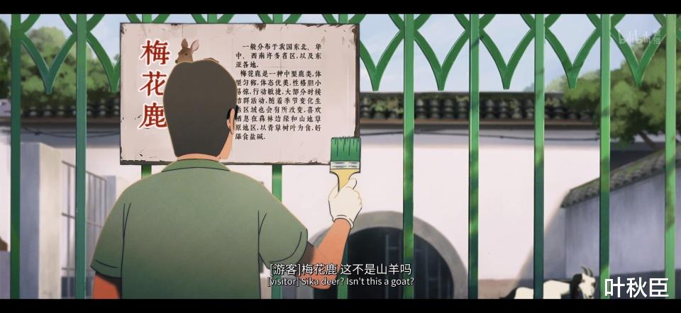 片中还有一幕格外讽刺,就是工作人员将梅花鹿的介绍贴在了山羊的笼前。