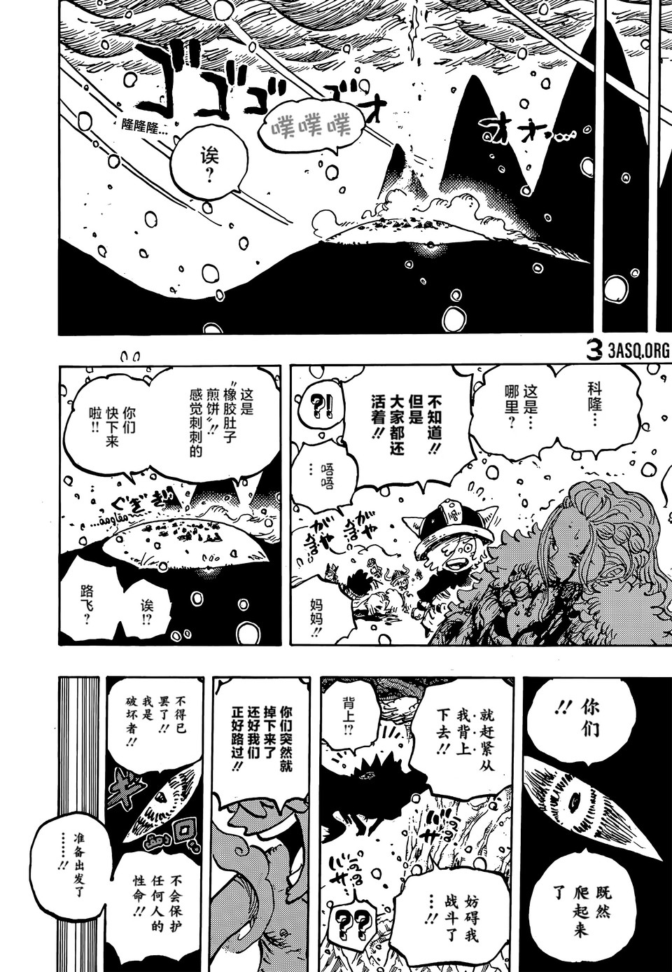 没有船只,索玛兹圣完全无法带走孩子,而且这些孩子正在走进深坑里,军子的箭头无法停止。孩子和家长都掉落冥界,他们也是为了孩子,只能牺牲自己保护孩子。路飞和洛基王子救了他们,众人都被放在安全的地方。