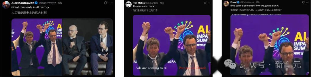 在新德里AI峰会上,合影环节,奥特曼和Dario Amodei并肩站着,却连手都不愿意牵一下.......