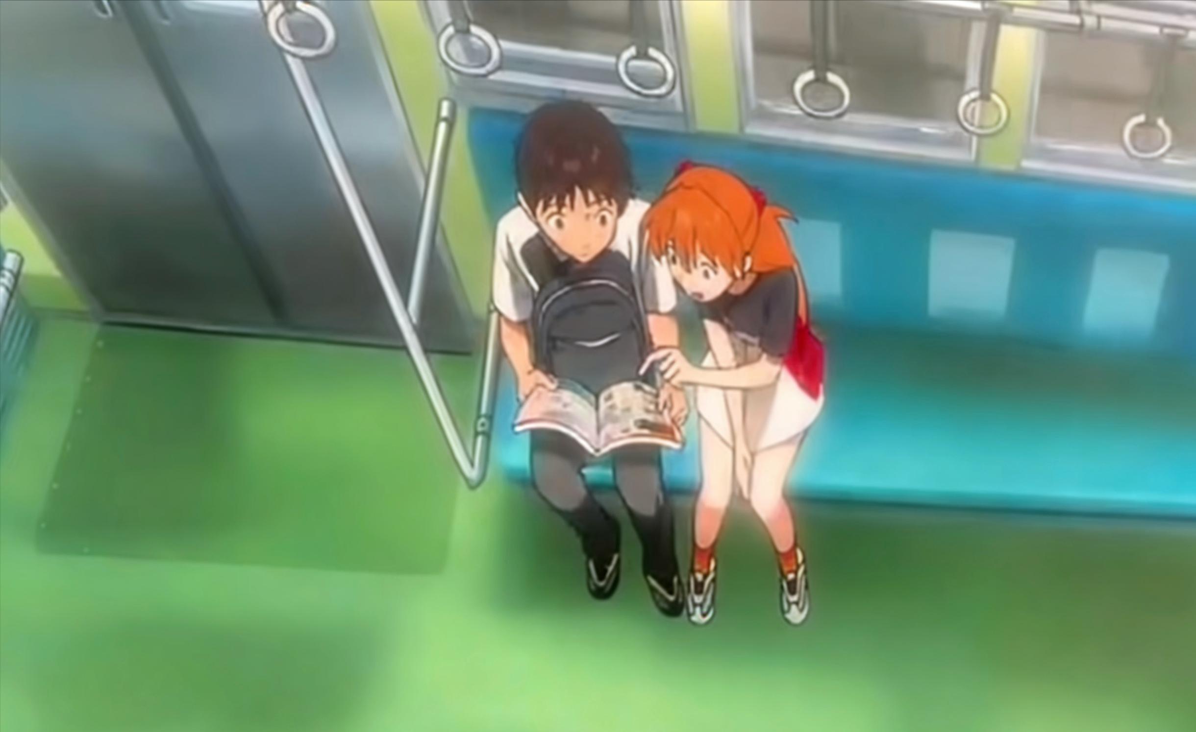 第四次,明日香入梦,总算有点观众们想看的内容了,在这个世界,明日香和真嗣两人乘坐电车,来到第三东京市旅游。