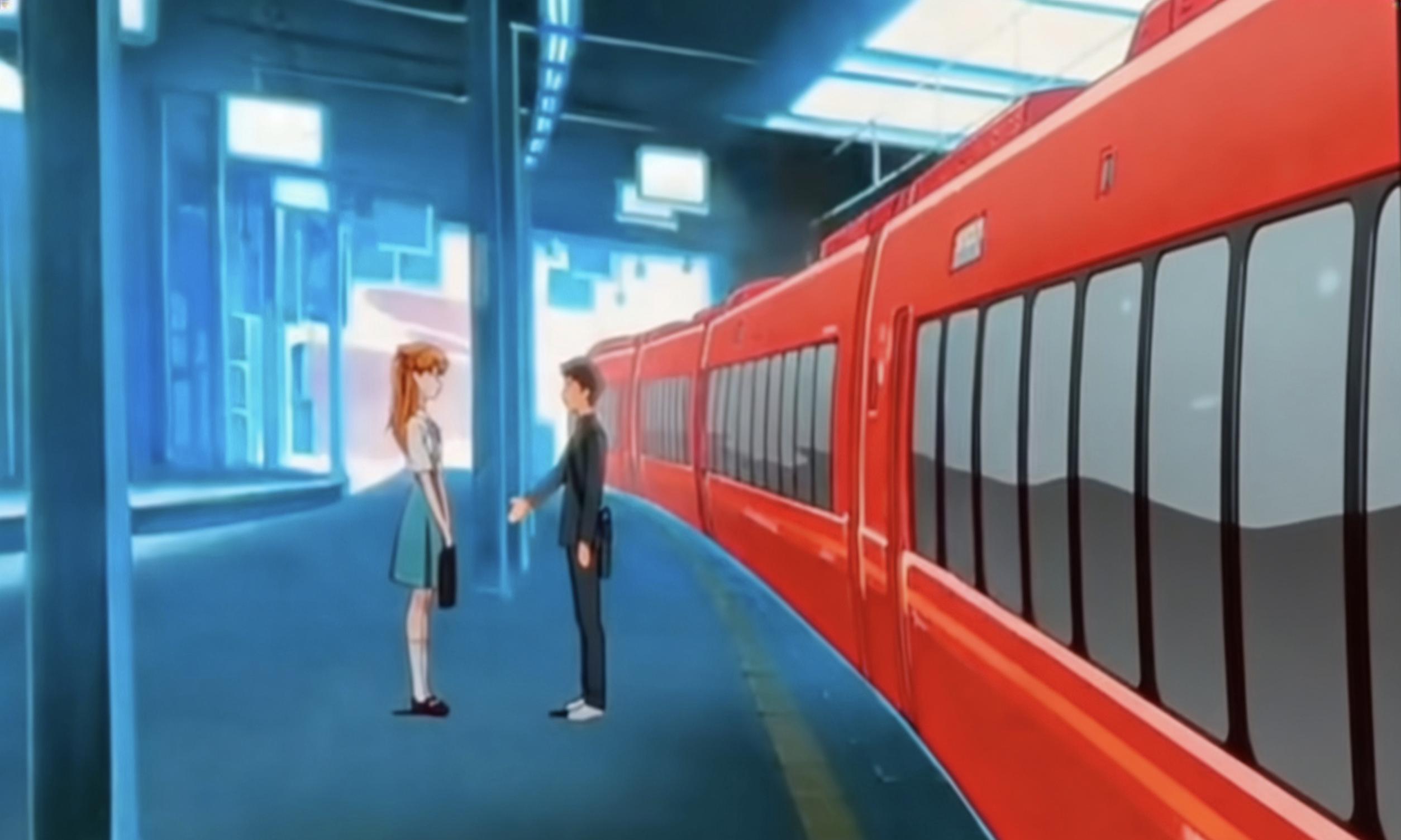 在《EVA》剧场版终的车站上,那个站台孤单的身影,车站停靠开门,碇真嗣走出来,向着明日香伸出手:明日香,一起走吧。