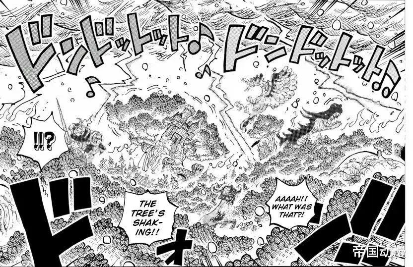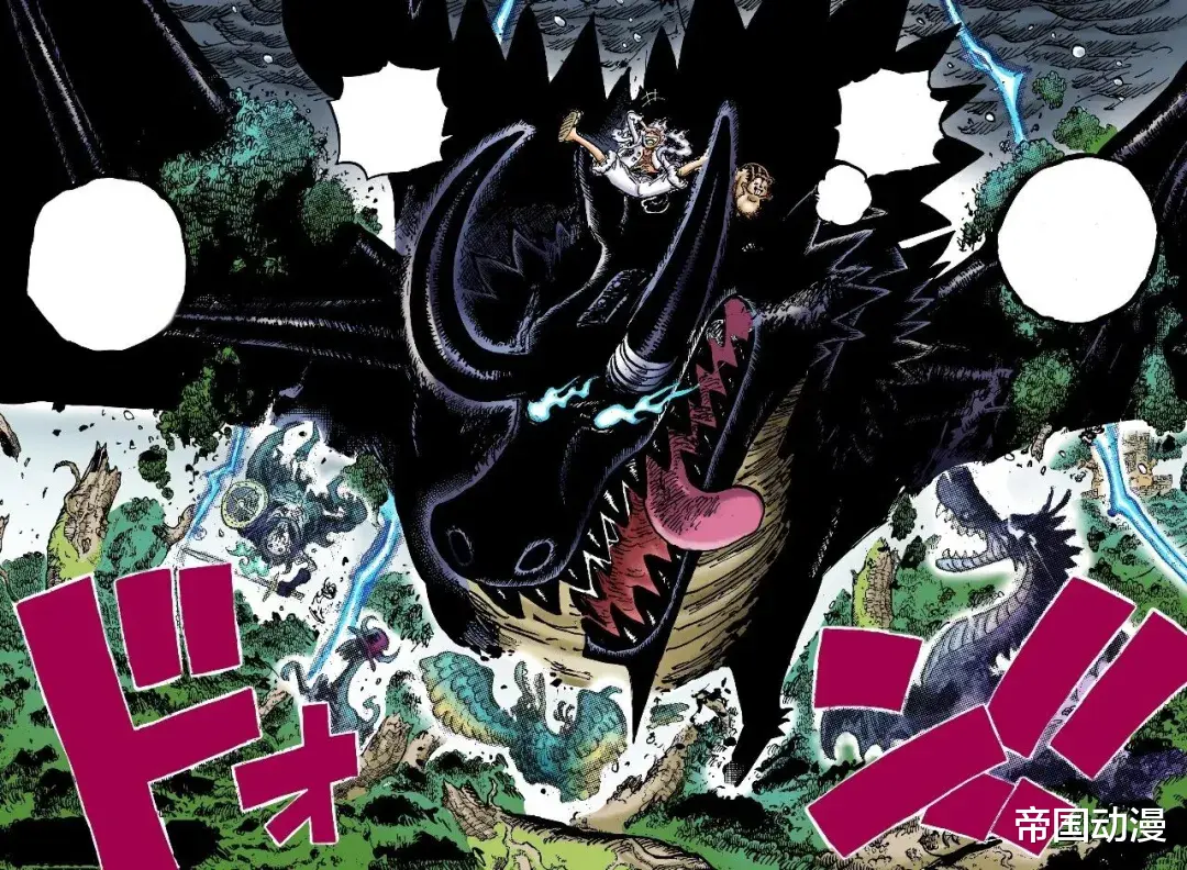 继续情报,路飞开启五档用新技能对索玛兹攻击,技能名为橡胶白雷回转弹(情报师认为是“雷将象枪”的升级版),路飞用巨大的拳头击中索玛兹,这招式还带有强大的电击。洛基这边用他的雷电之力击败了大多数梦魇怪物。