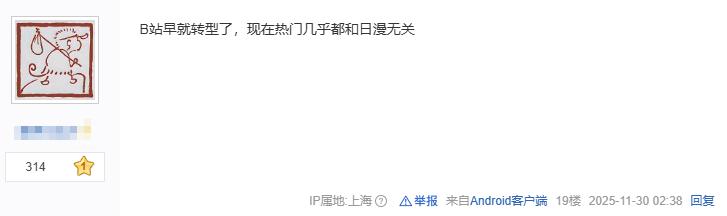 “B站首页热门跟日漫半毛钱关系都没有了。”