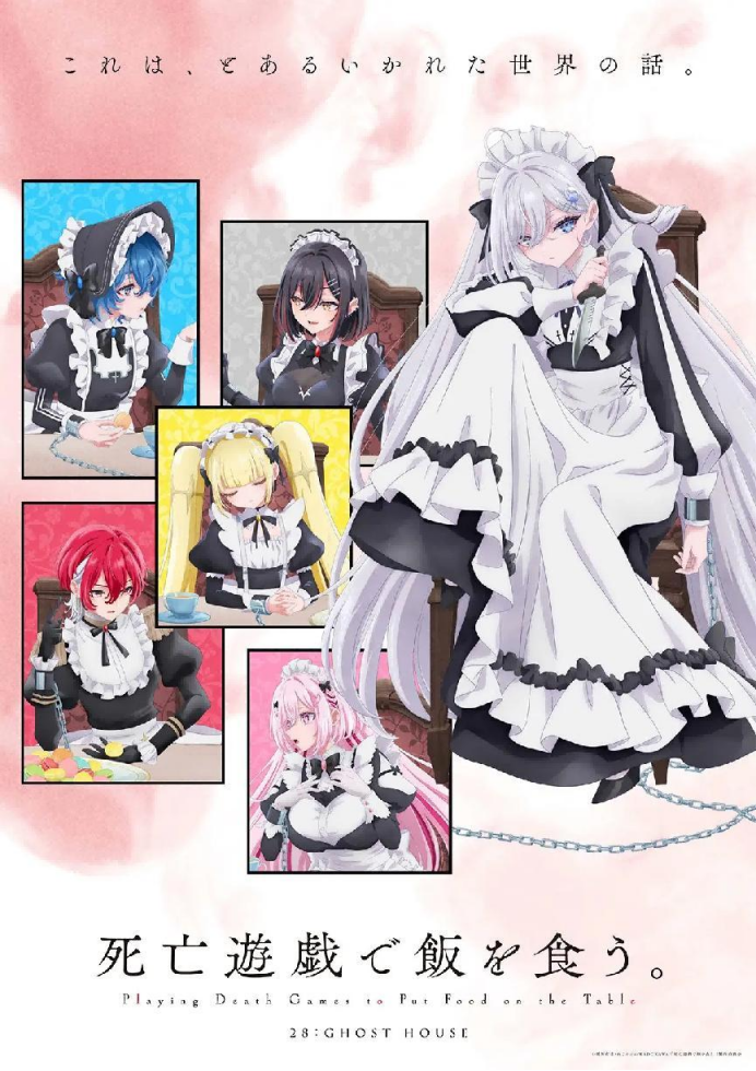 美少女、女仆装与致命陷阱在无窗的洋馆中交织,一场赌上性命的直播游戏悄然开幕,《靠死亡游戏混饭吃。》(又译:《以死亡游戏为生》),定于2026年1月7日正式开播,并且首集就将以长达1小时的特别篇形式呈现,STUDIO DEEN(制作过义妹生活)负责动画制作,想必是野心不小;看了下PV,单帧不错,很多画面都能看出在构图、镜头上下了心思,不过不够流畅……有一种资金不够取长补短的精致感。(或许正片发力吧)