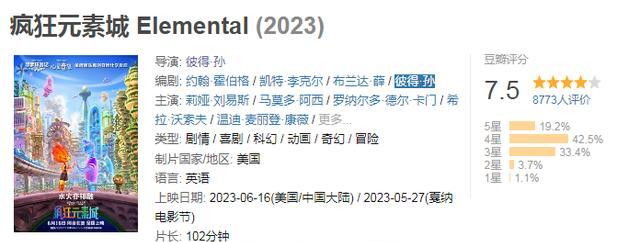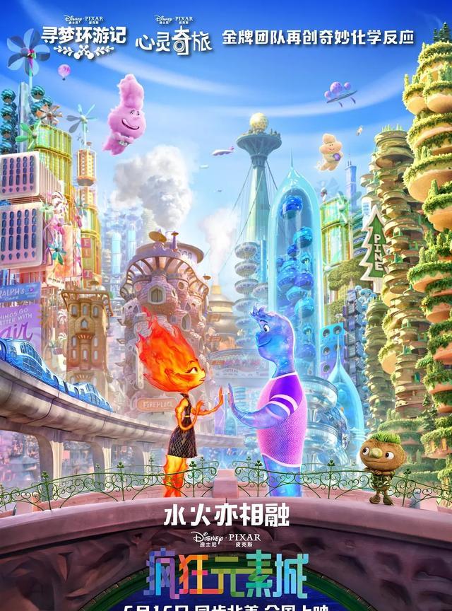 问题出在“水火恋”本身。水与火天然相克,本该是张力拉满的设定,却被简化成“爱能跨越一切”的口水歌。观众不是不买账,是太熟了——从《罗密欧与朱丽叶》到《小姐与流氓》,隔条鸿沟谈恋爱,好莱坞用了八十年。皮克斯曾经最擅长把老梗玩出新毛边,《玩具总动员》让塑料牛仔掉漆,《头脑特工队》把眼泪拍成黄色校车,可《疯狂元素城》却像被戴了手套,摸不到火,也沾不湿水。