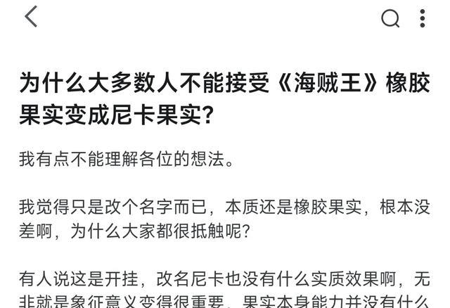 ### 二、尾田到底改了什么,又没改什么| 项目 | 之前读者以为 | 实际设定 | 变化幅度 ||||||| 品类 | 超人系·橡胶 | 动物系·幻兽种·尼卡 | 品类跳级 || 外观 | 身体只能拉伸 | 环境也能拉伸 | 范围扩大 || 定位 | 自己傻乐 | 让众生强制笑 | 群控附加 || 弱点 | 怕斩击、怕冰 | 依旧怕斩、怕海楼石 | 弱点保留 || 梦想 | 我要当海贼王 | 我要当海贼王 | 一字未动 |