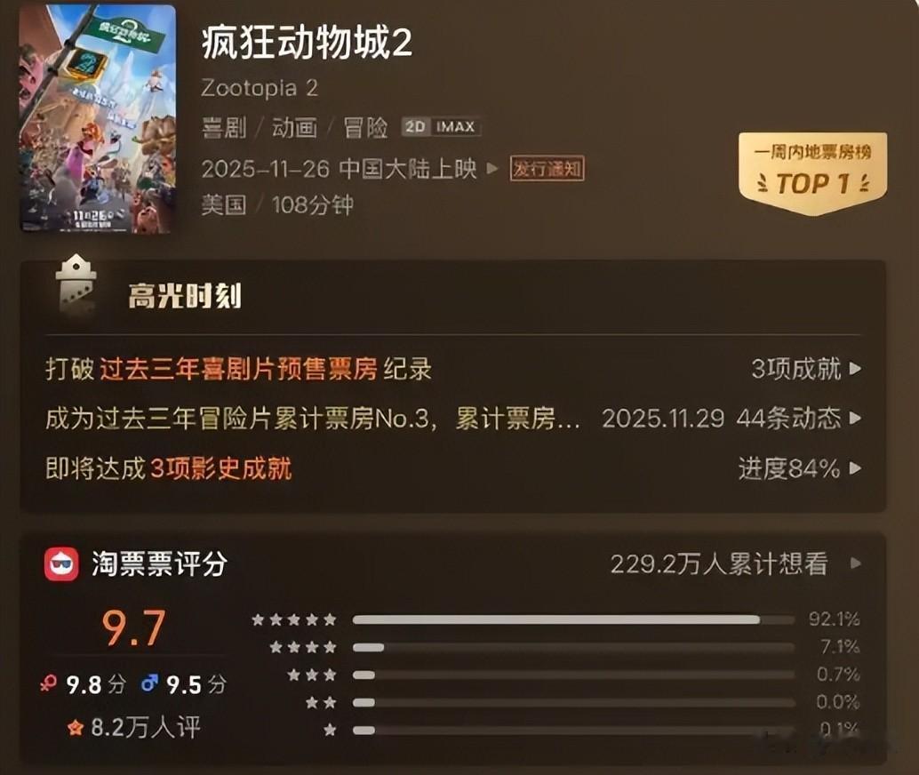 这部阔别10年的续作,不仅让58.8%的29岁以下观众重返影院,更以动物乌托邦为载体,完成了对理想社会的全新诠释。